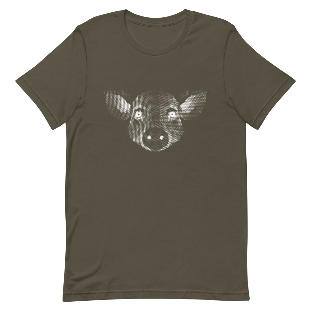 This pig looks a bit confused, or we can say dithered. The same applies to the design style. Feeling a bit jittery? Then this is the right pig t-shirt to express your mood.