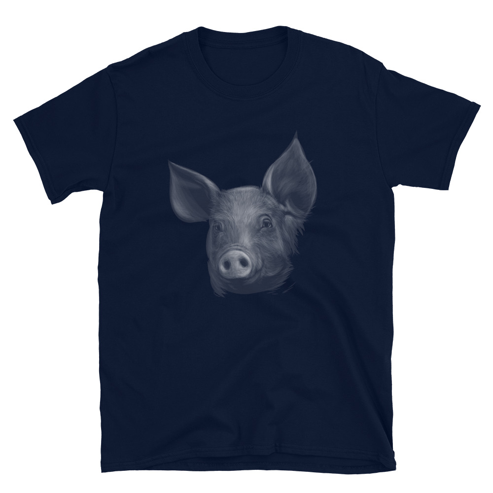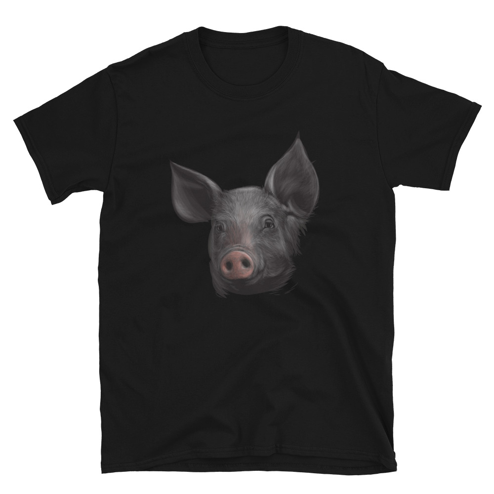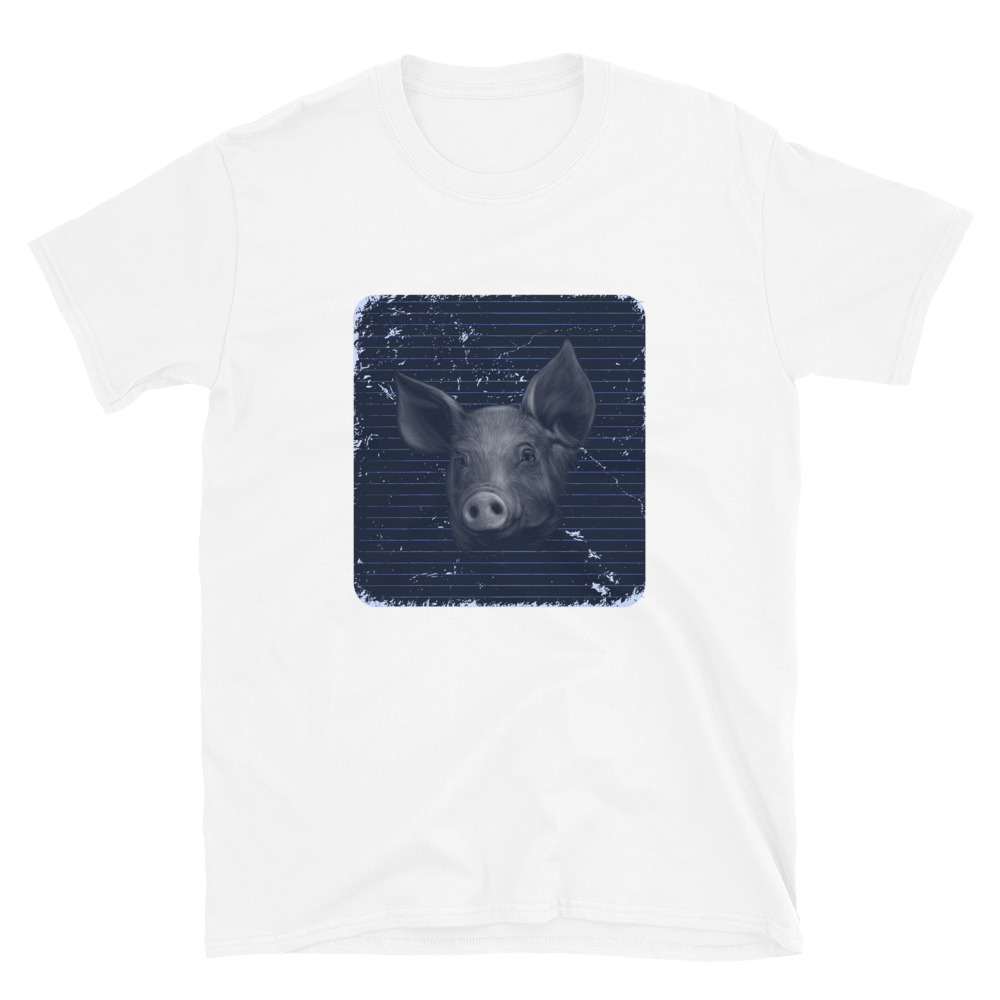This pig was so pretty and with such a calm expression on its face that it was chosen as a model for an artist. The painter created a portrait afterwards, which was used for this exceptional design.