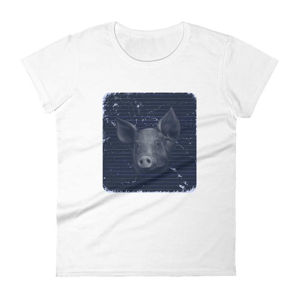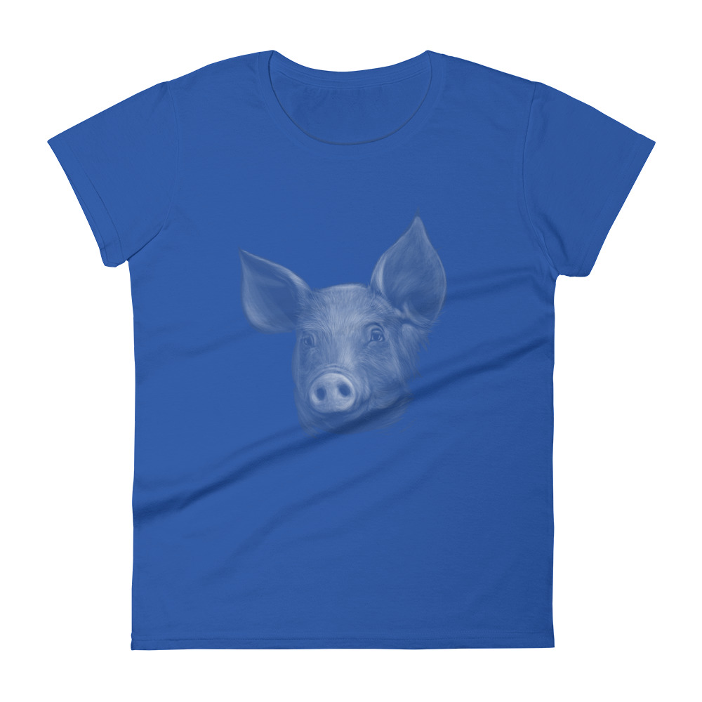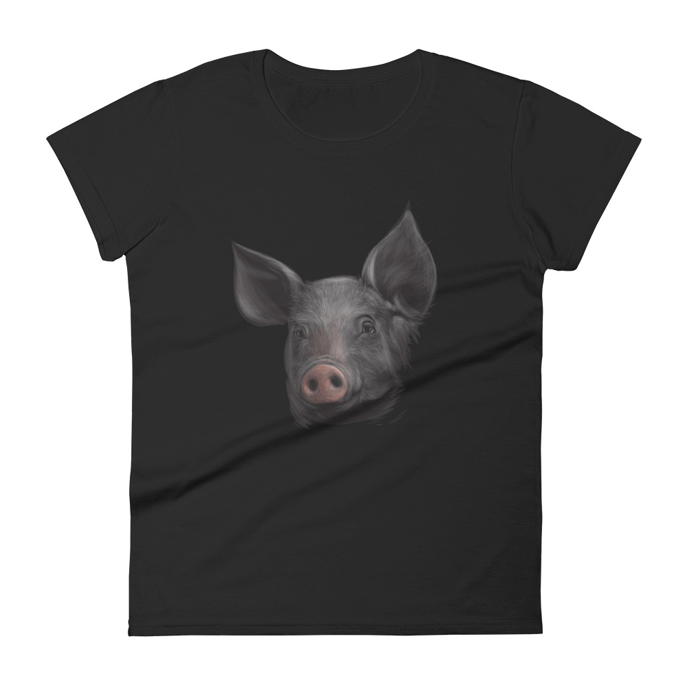 This pig was so pretty and with such a calm expression on its face that it was chosen as a model for an artist. The painter created a portrait afterwards, which was used for this exceptional design.