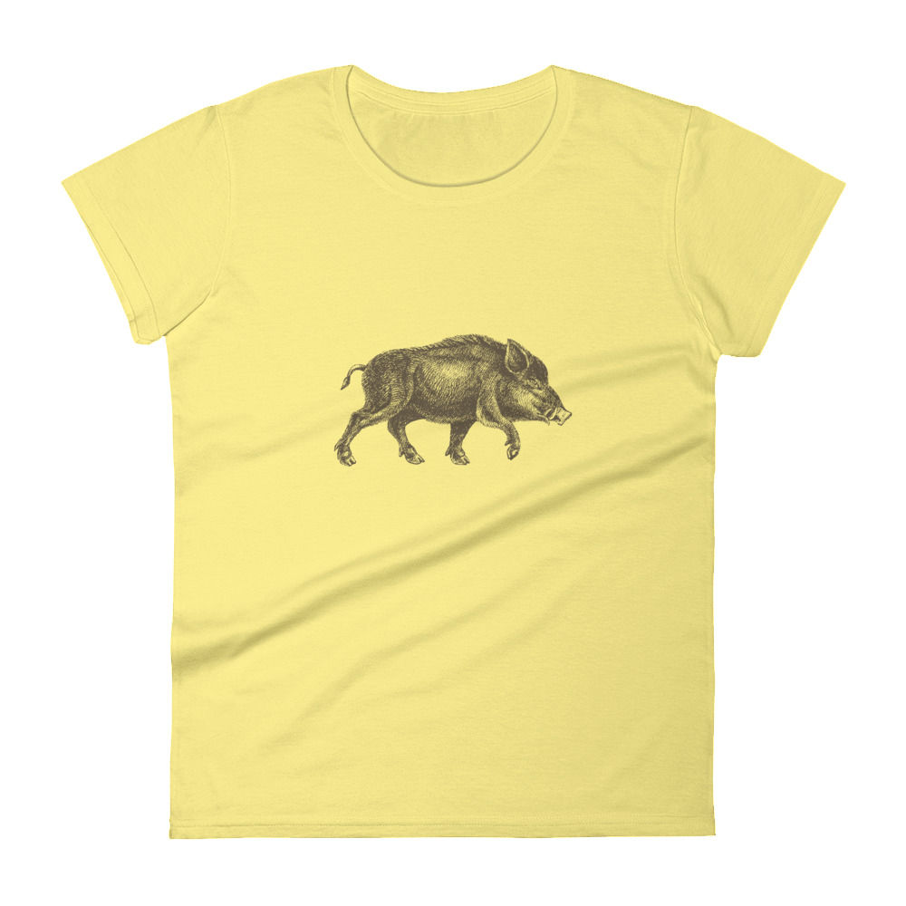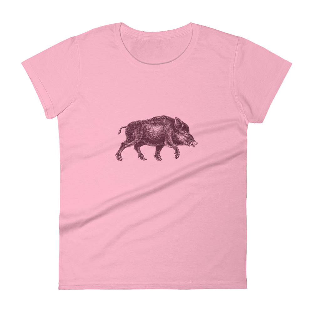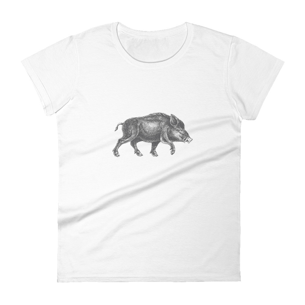 Here you can see a realistic depiction of a wild boar walking around, looking for some acorns. If you like this gorgeous wild animal and you prefer clean and simple designs, this piece will be your choice.